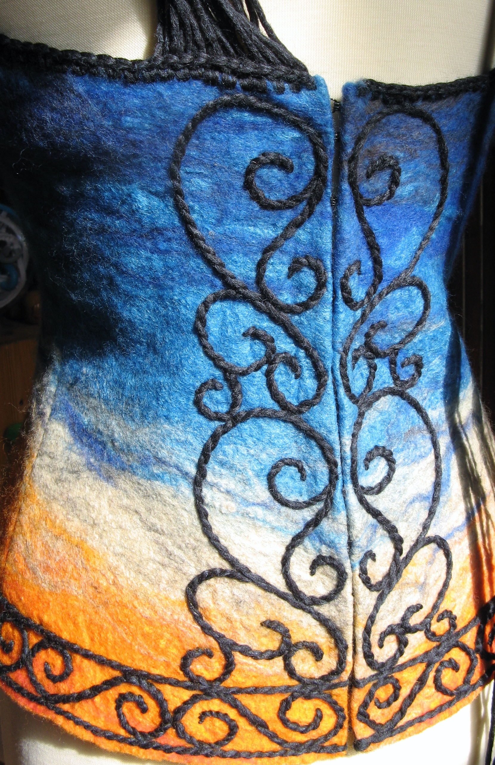 Here’s a taste of what I’ve done … I finished the last bit of sewing this afternoon, and tomorrow it ships out! This time around, the pieces will all be in a runway show, and we’re being judged (in part) on runway impact. So, wish me luck!!