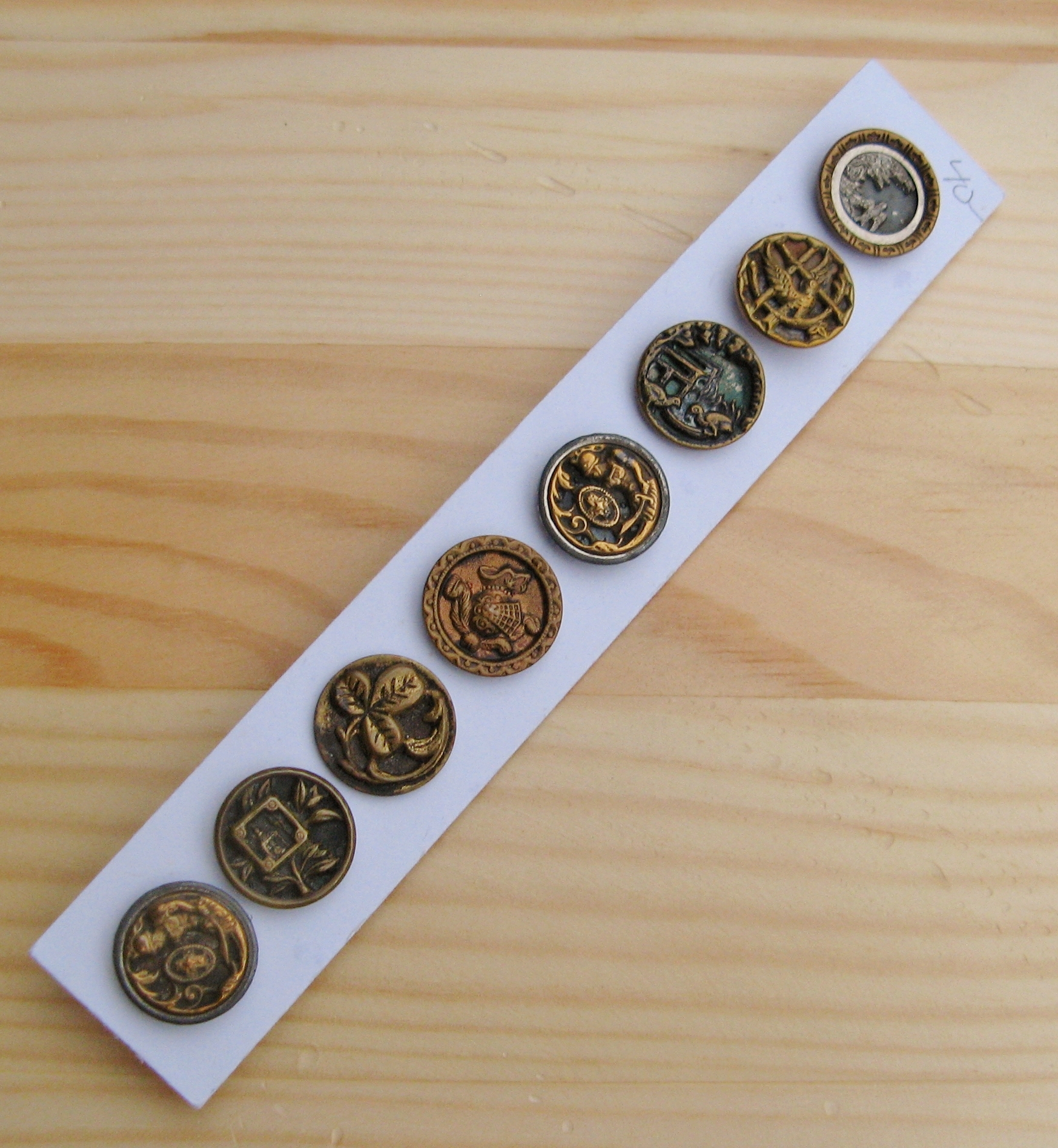 The brass buttons are un-used, authentic Victorian … each has its own little scene, but I lie the ducks best: