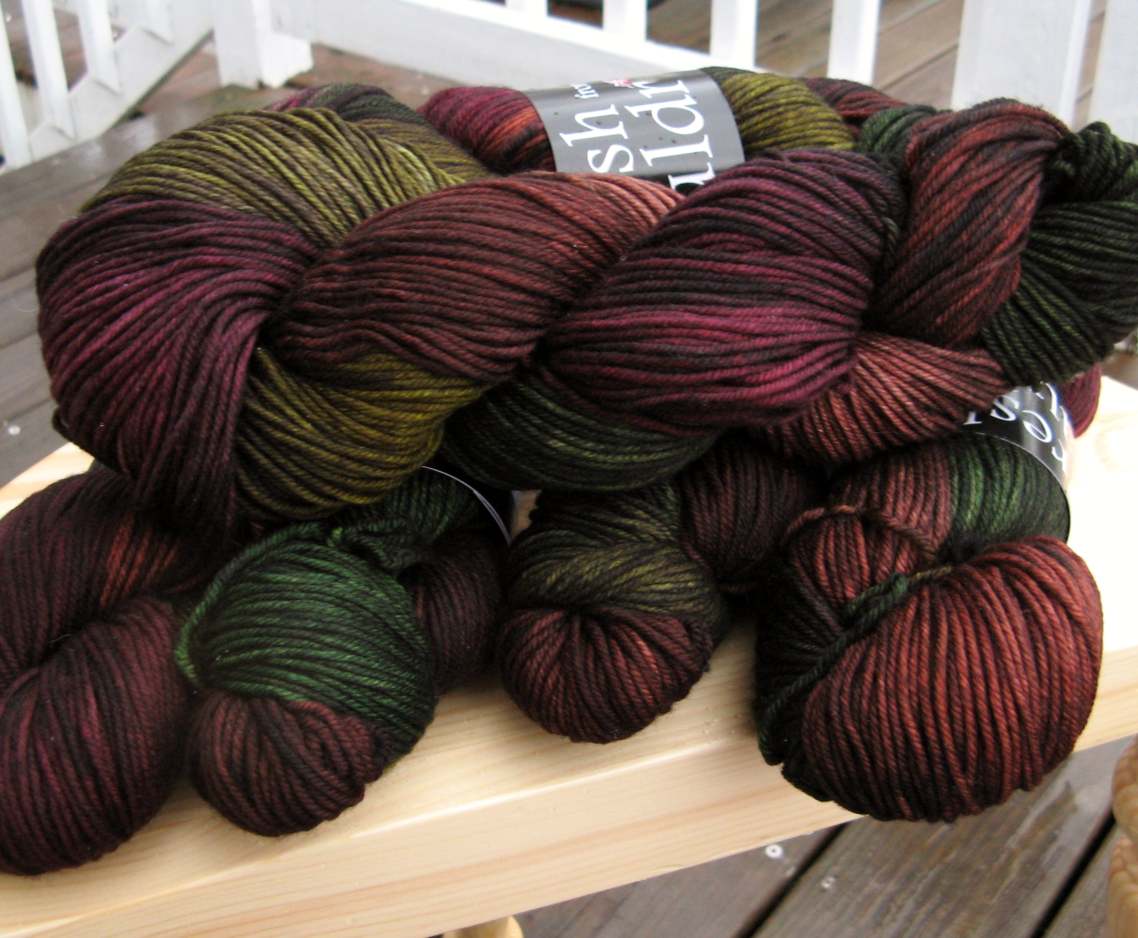 On to the yarn! My biggest purchase was six skeins of Fresh From the Cauldron Opilio, destined for a cabled cape.