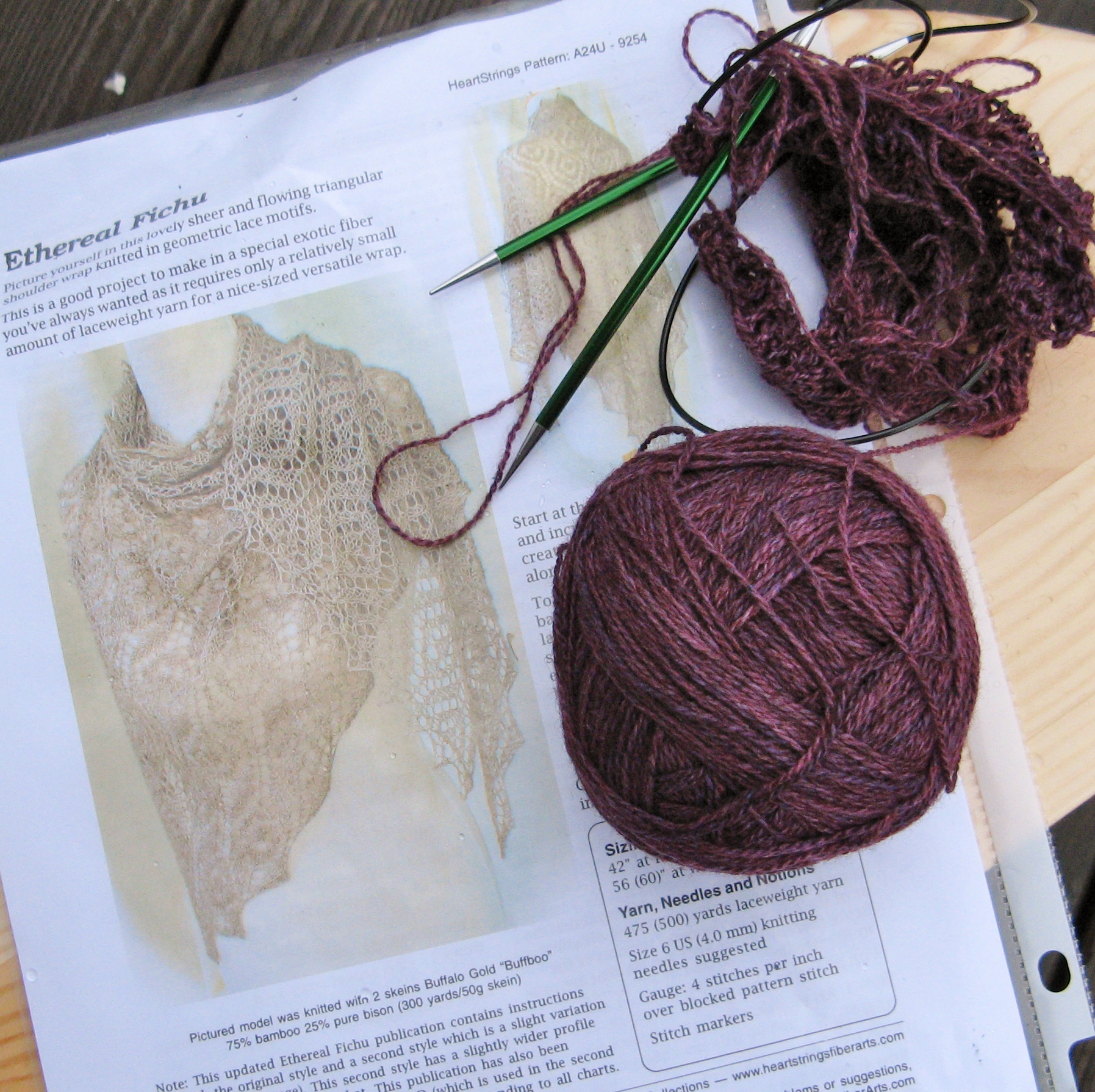 From the Buffalo Wool Company, a single skein of Sexy. I bought it to make a pattern on display … and lucky me, I even had needles to cast on AT STITCHES. That’s right, I brought my US6 signatures along, just on the off chance I’d have the perfect project to cast on, and I did! 🙂 So there’s some actual “Cast On Monday” for you.