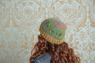 This vibrant hat use a variety of different techniques to create playful color changes and textures.